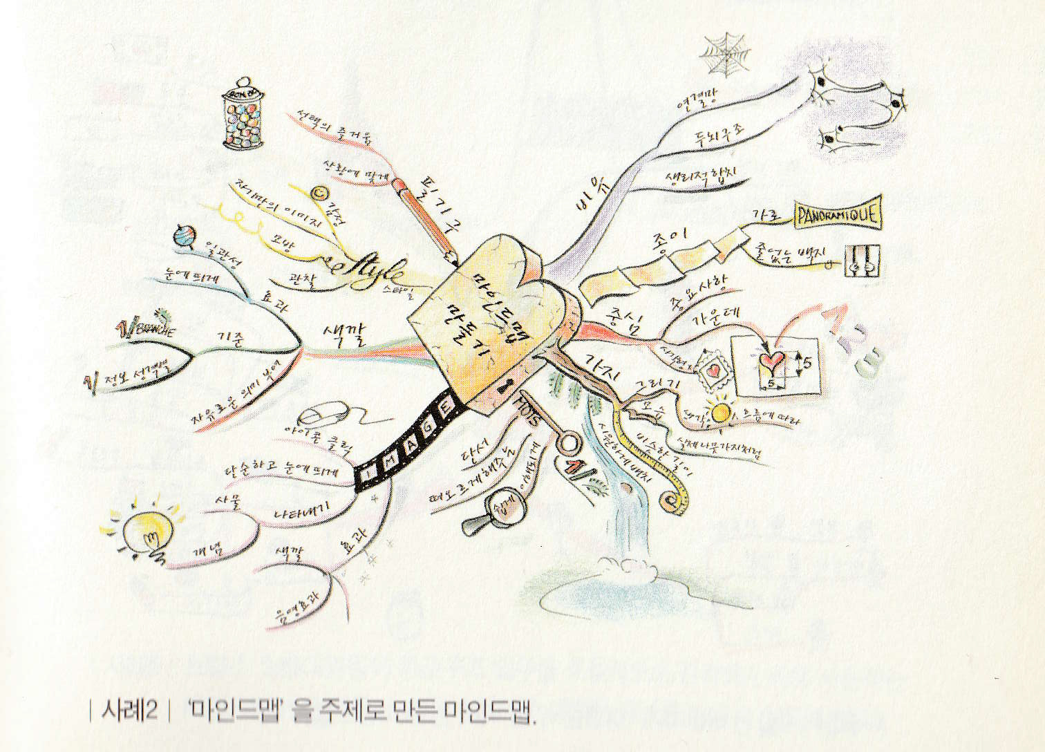 단순한 생각을 시각화하여 아이디어로 발전시키는 기술로 속독법이라고 해서 단순 암기가 아닌 시각화하여 기억하는 방법으로 영재교육에서도 꽤 활용되었다고도 합니다.