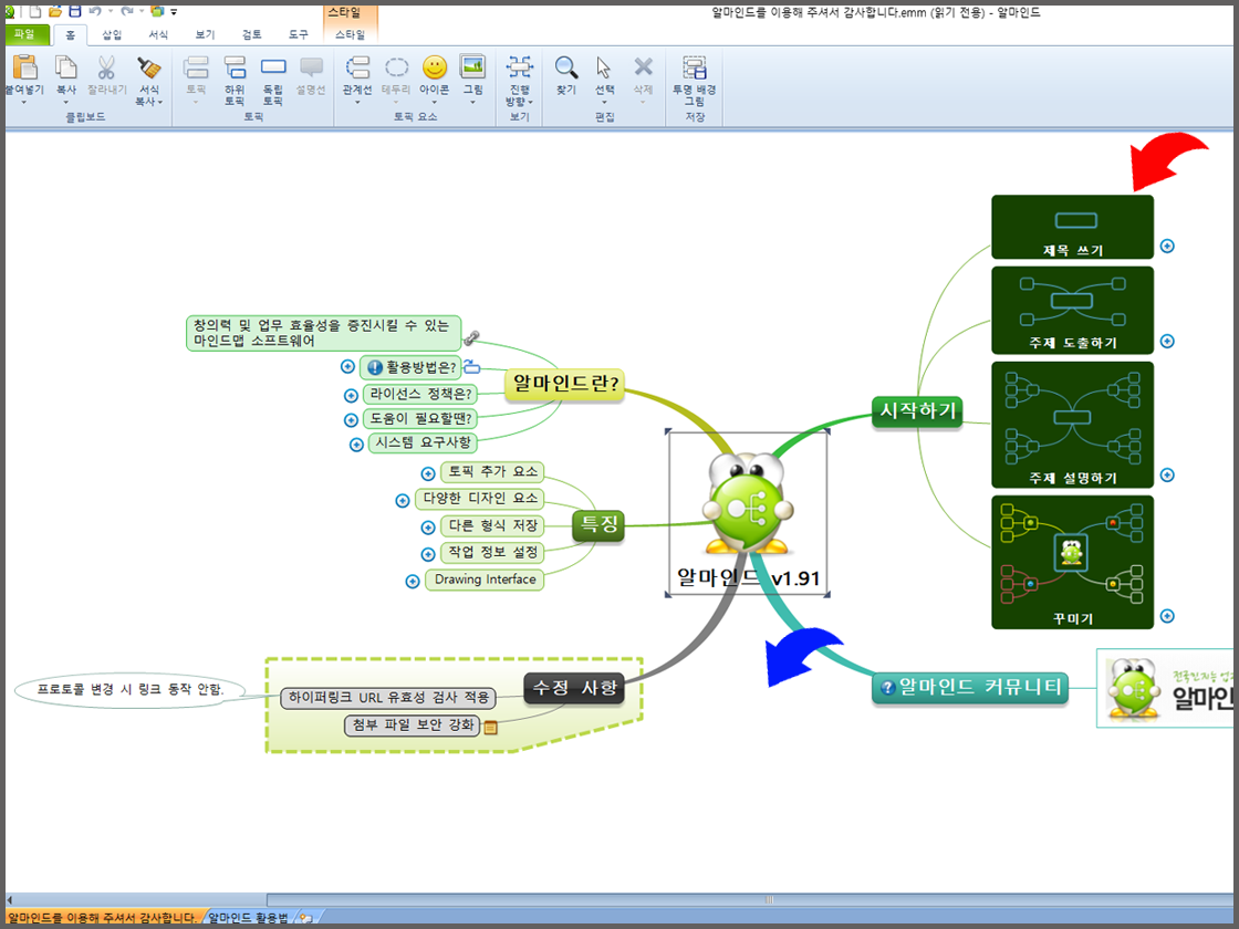 디지털 마인드맵은 알마인드뿐만 아니라 다양한 프로그램이 있으며, 구글이나 네이버 검색에서 '디지털 마인드맵 추천'이라고 검색하시면 다른 프로그램들도 둘러보실 수 있으니 참고해주세요.